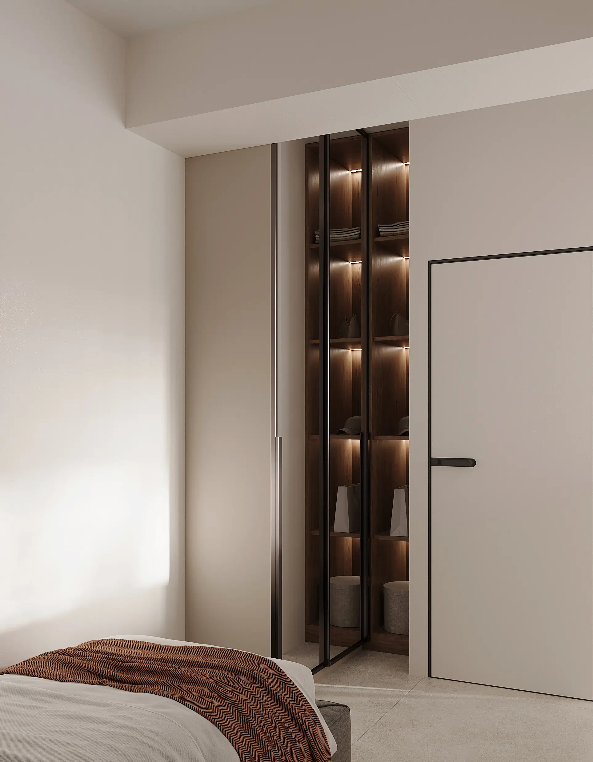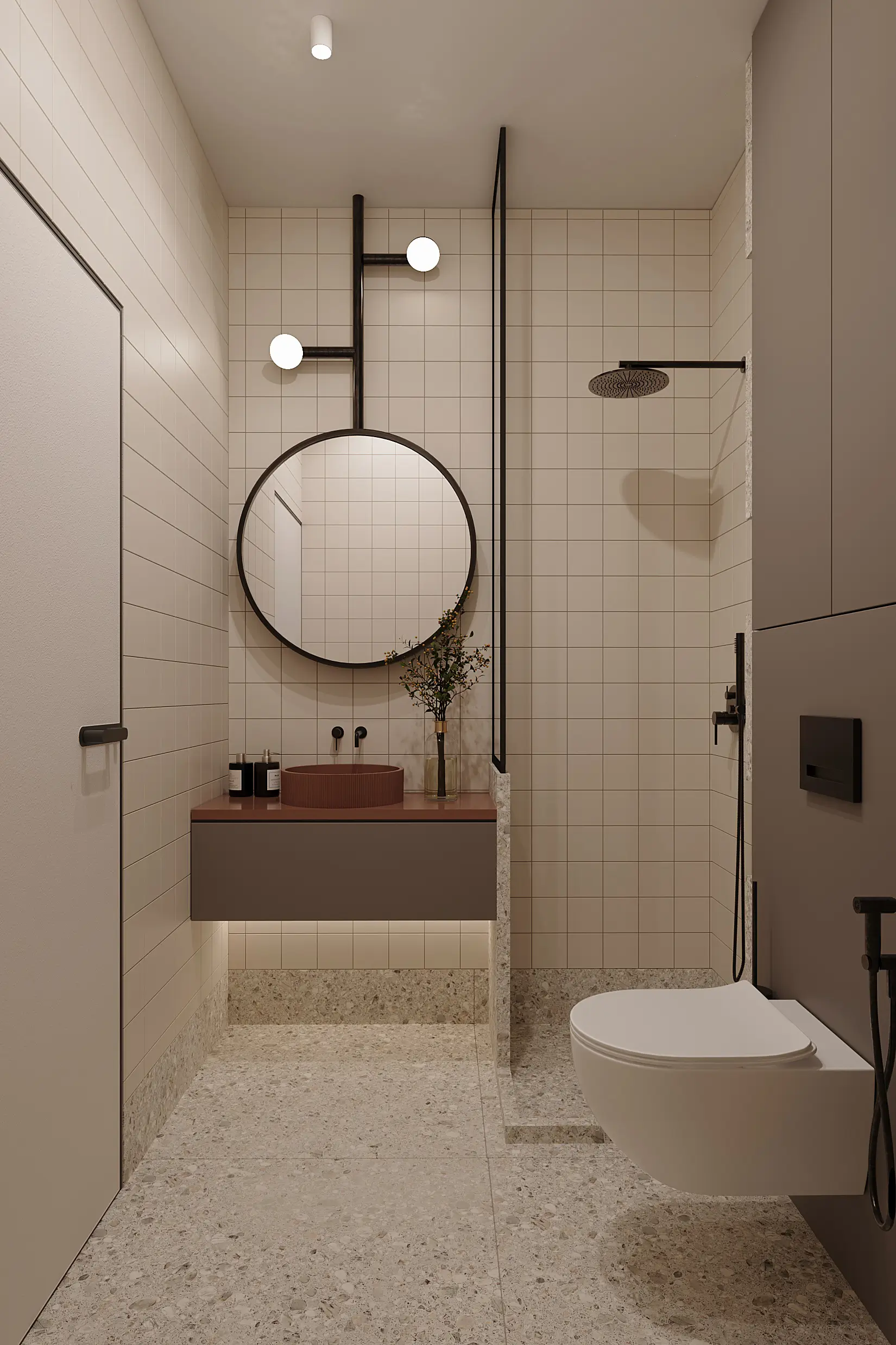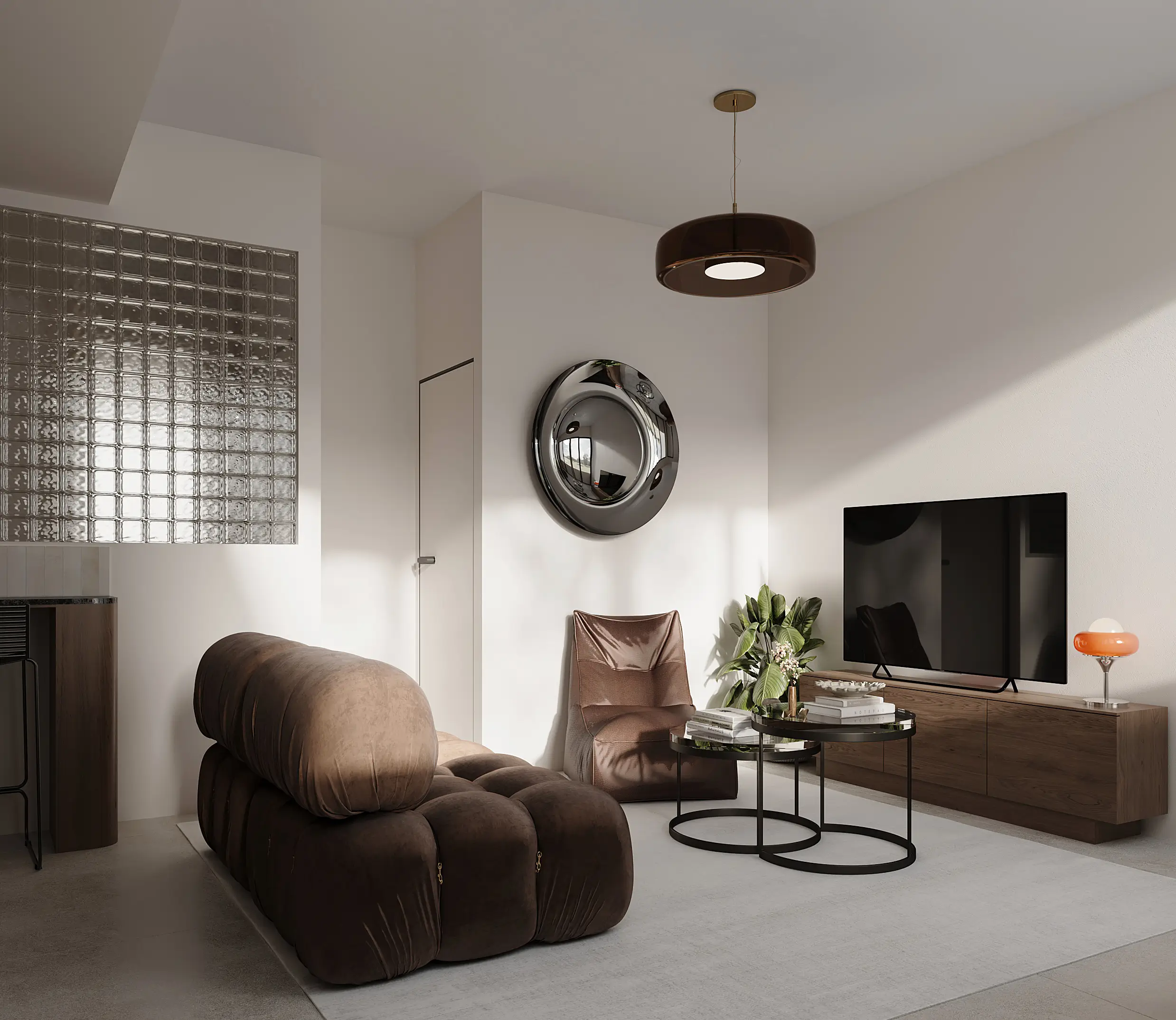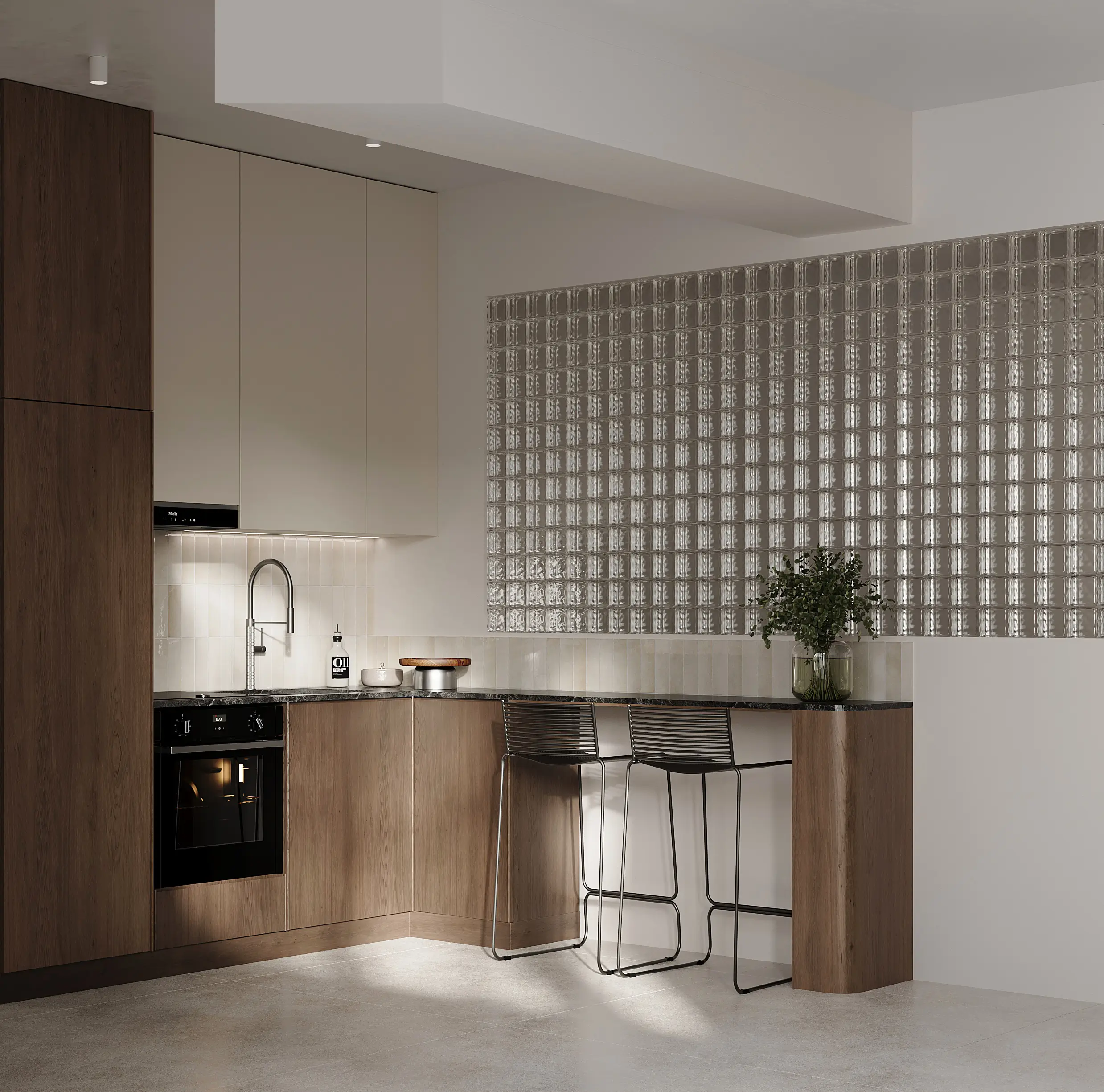 Το Berlin Flat αποτελεί ένα σύγχρονο project κατοικίας που παρουσιάζεται μέσα από υψηλής πιστότητας φωτορεαλιστικά 3D σχέδια και architectural visualization εσωτερικών χώρων. Ο σχεδιασμός του διαμερίσματος βασίζεται σε καθαρές γεωμετρικές γραμμές, φυσικά υλικά και ισορροπημένες χρωματικές αντιθέσεις, δημιουργώντας ένα minimal αλλά ζεστό περιβάλλον διαβίωσης. Μέσα από προηγμένες τεχνικές 3D rendering, αποτυπώνεται με ακρίβεια η υλικότητα του ξύλου, η διάχυση του φωτός μέσω υαλότουβλων και η αίσθηση βάθους που προσδίδει η σωστή προοπτική απεικόνισης.