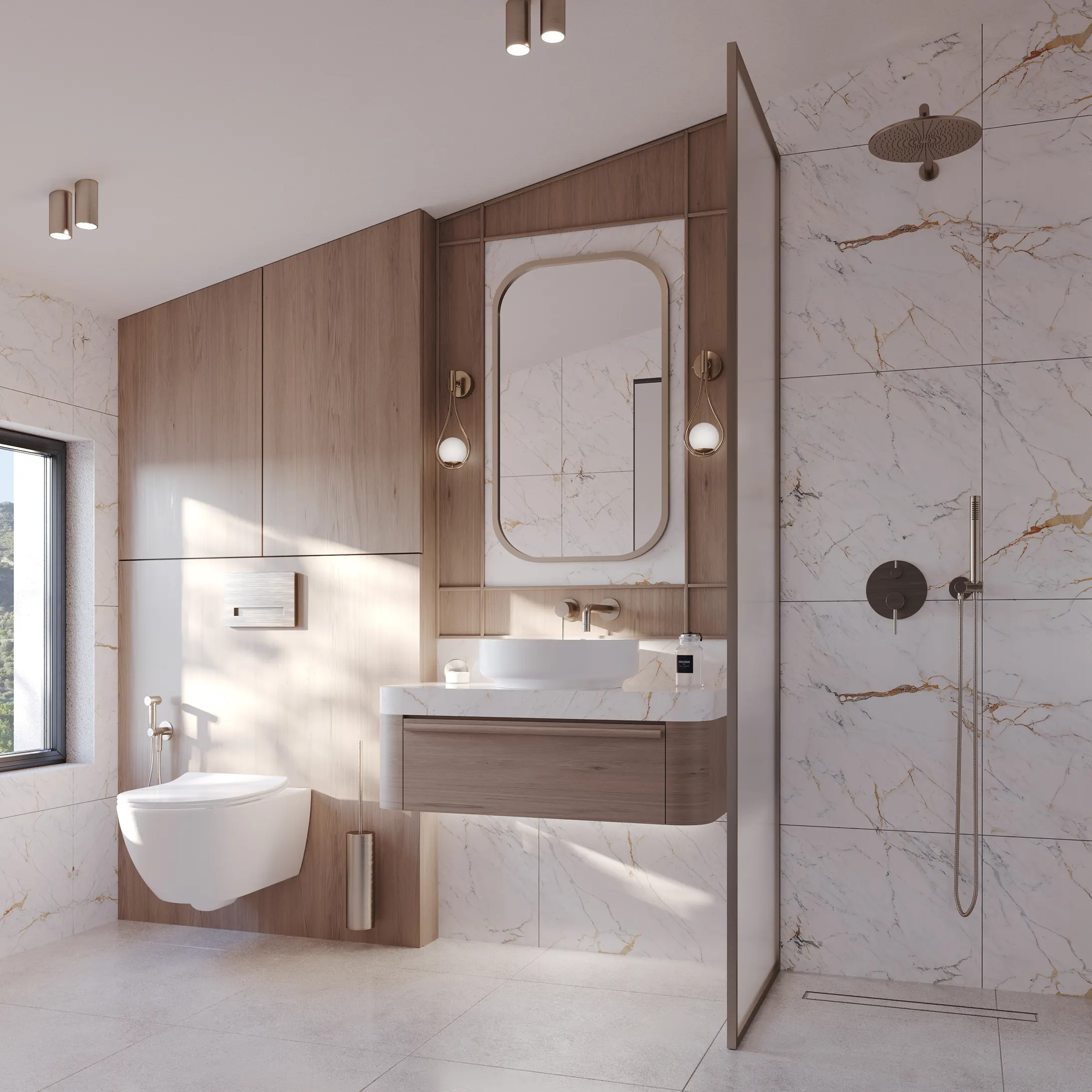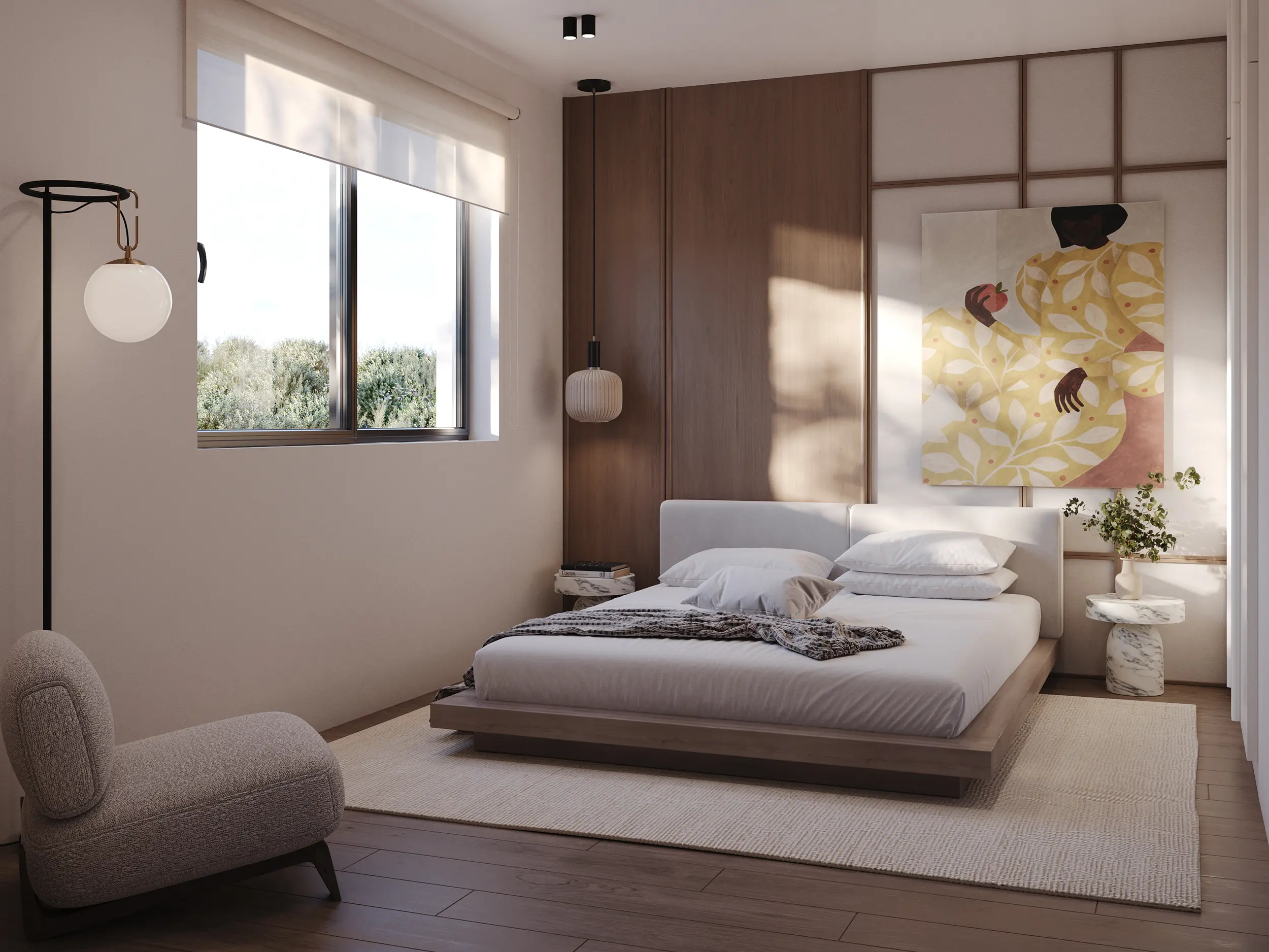 Το Interior Design στο CORE RESIDENCE οργανώνεται γύρω από μια καθαρή, σύγχρονη αρχιτεκτονική λογική: ουδέτεροι τόνοι, φυσικές υφές και ισορροπία ανάμεσα σε ζεστό ξύλο και ήπιες, μονόχρωμες επιφάνειες. Η σύνθεση δίνει προτεραιότητα στη ροή της καθημερινότητας, με ενσωματωμένες κατασκευές που εξαφανίζουν την ακαταστασία και αναδεικνύουν τη γεωμετρία του χώρου μέσα από διακριτικές χαράξεις, λεπτές σκιάσεις και σωστά μελετημένο φυσικό φως.