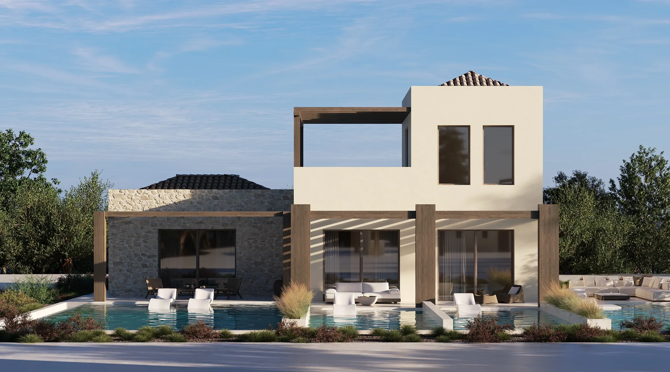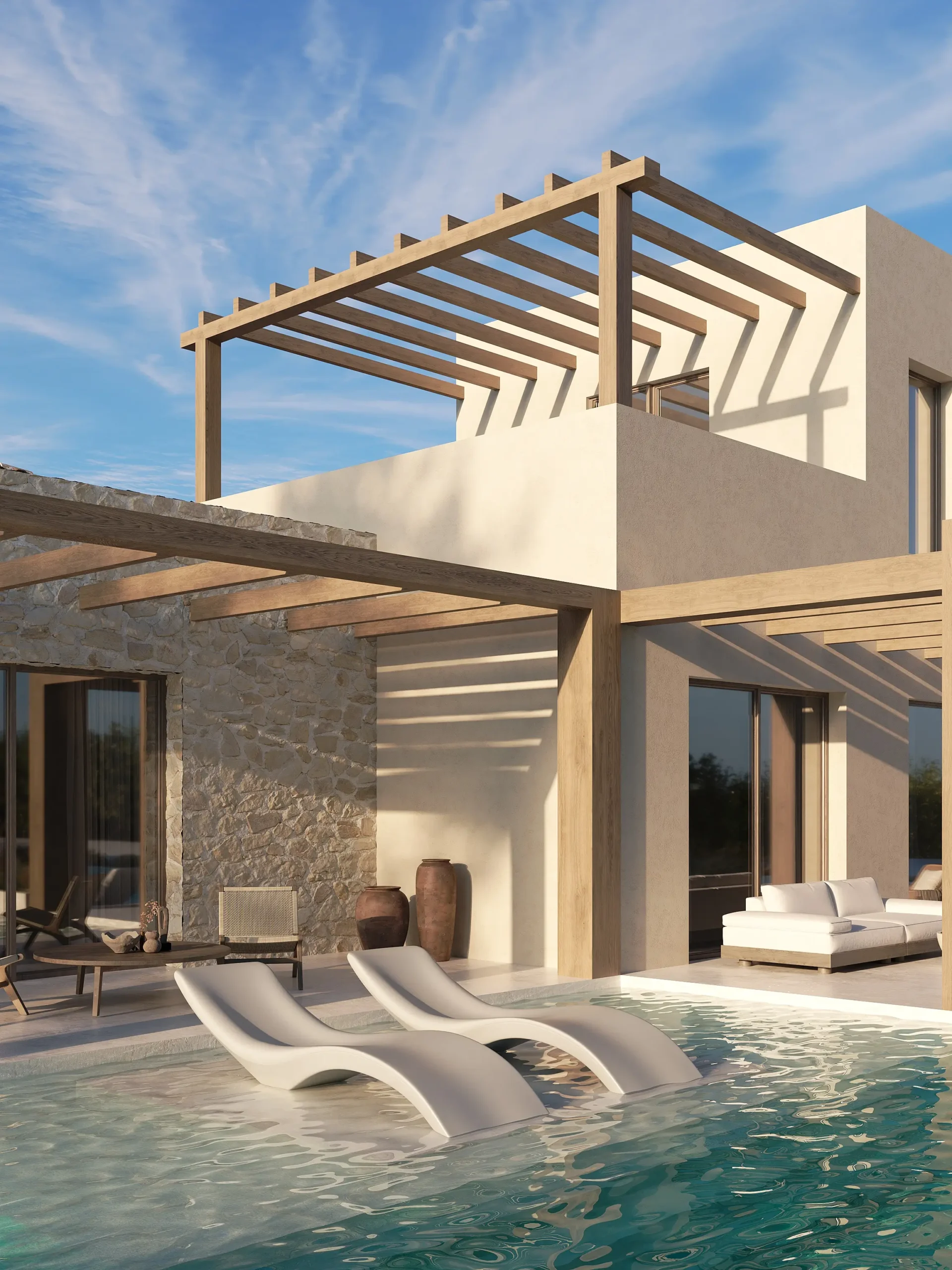 Εξειδικευόμαστε στον αρχιτεκτονικό και εσωτερικό σχεδιασμό τουριστικών μονάδων στην Κεφαλονιά, προσφέροντας σύγχρονες λύσεις interior design για σουίτες, bungalows, luxury villas και resort συγκροτήματα. Ο σχεδιασμός βασίζεται σε καθαρές γεωμετρίες, φυσικά υλικά, γήινες αποχρώσεις και προσεκτικά μελετημένο φωτισμό, με στόχο τη δημιουργία χώρων που αποπνέουν ηρεμία, πολυτέλεια και αυθεντικότητα.