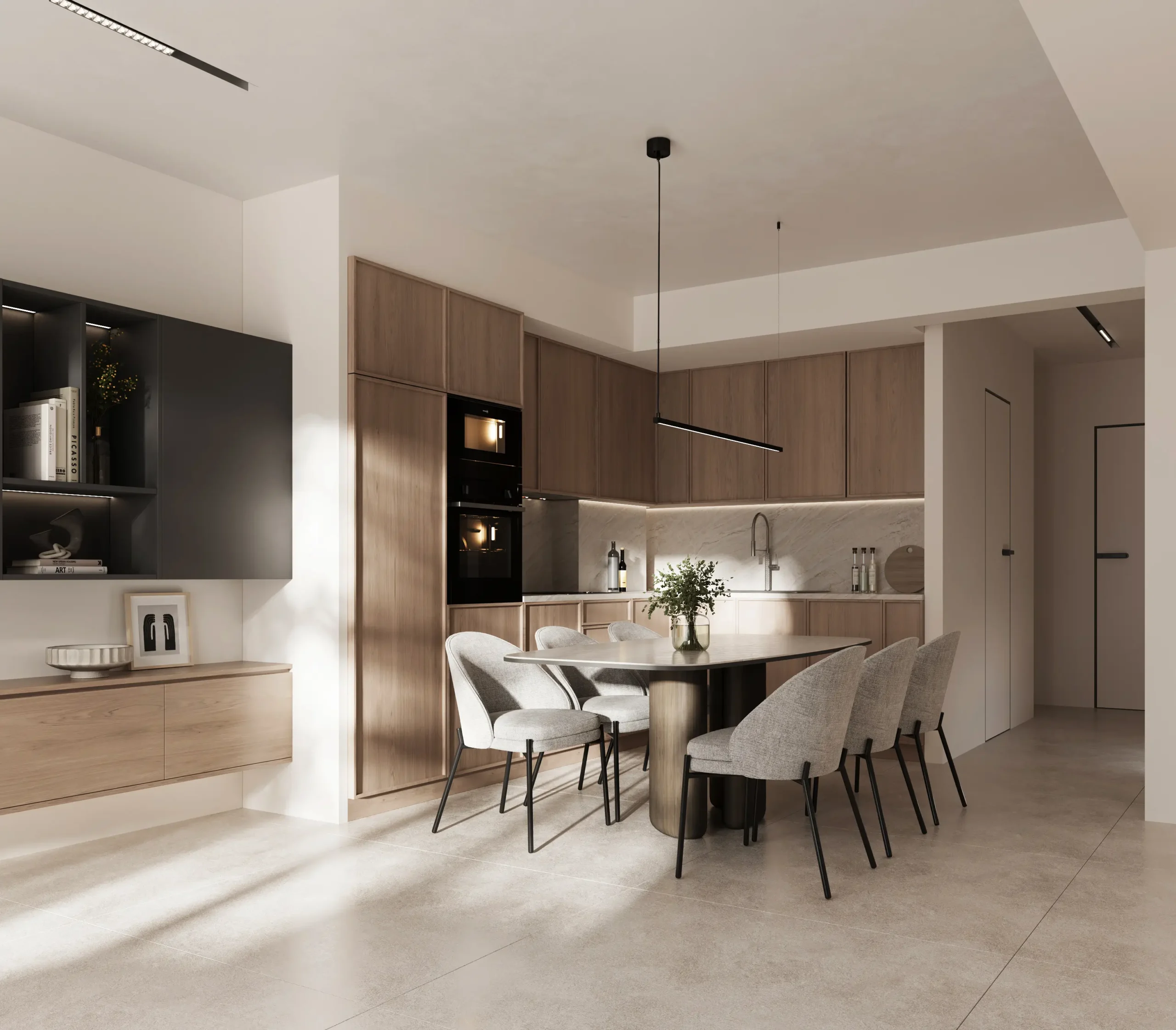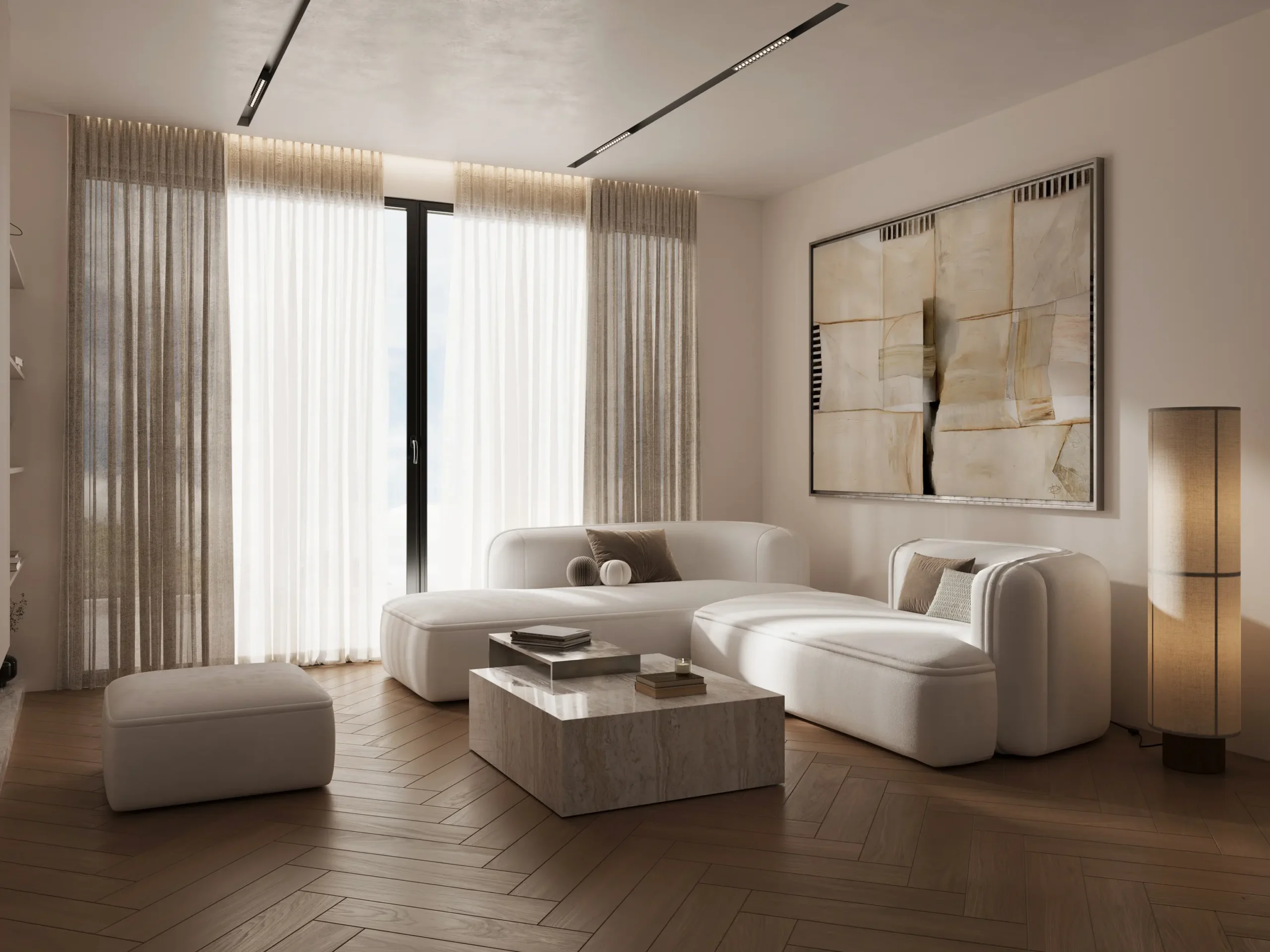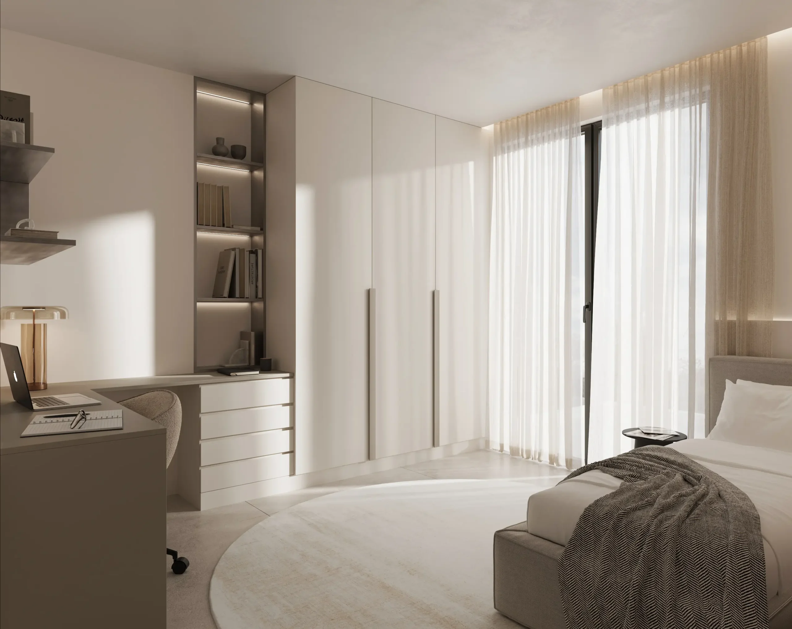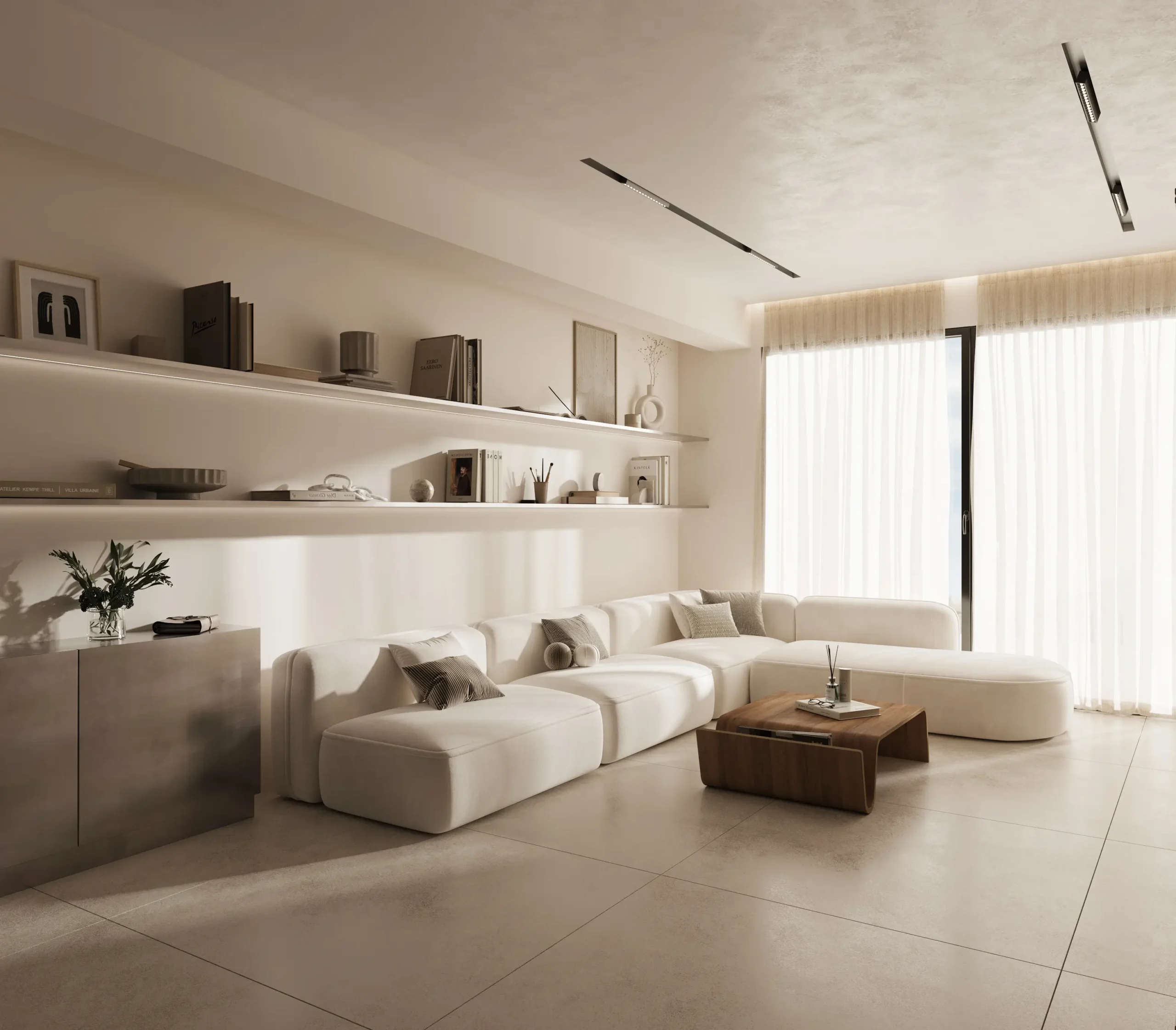 Στα φωτορεαλιστικά 3D renders της Sand Residence δίνεται έμφαση στην απόδοση της υφής της άμμου, των ουδέτερων τόνων και των φυσικών επιφανειών που χαρακτηρίζουν το interior design, δημιουργώντας μια ατμόσφαιρα ηρεμίας και αρμονίας. Η χρήση προηγμένων τεχνικών architectural visualization επιτρέπει την αναλυτική παρουσίαση των χώρων, από την κουζίνα έως τα υπνοδωμάτια και τα καθιστικά, με στόχο να προβάλλει την ποιότητα σχεδιασμού και τη λειτουργικότητα σε κάθε λεπτομέρεια.